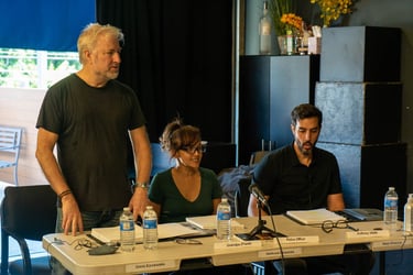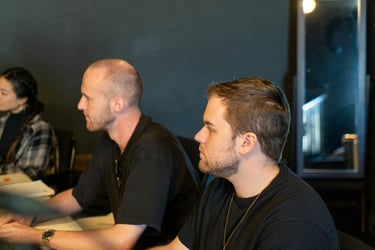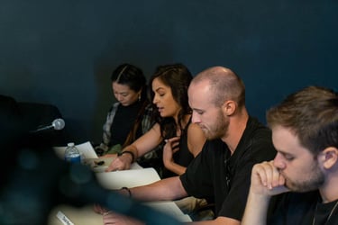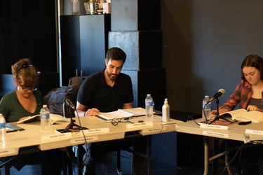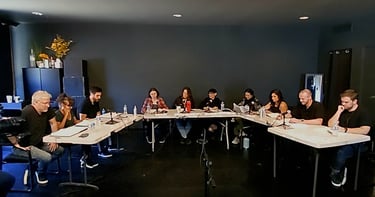 We're excited to announce that we had our first live table read for Guys Night on October 9, and it was a resounding success. The event took place at Speiser-Sturges Actors Studio in Los Angeles, and was cast using local Los Angeles-area actors. The event was filmed by our Director Of Photography Louis Powell. In keeping with safety protocols, all actors and other participants were required to take a covid test prior to the event, and masks were worn by those not directly involved in the read.
