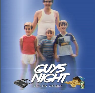 Inspired by true events, Guys Night tells the story of Anthony Vitello, a stoic yet devoted father raising three boys on his own in 1980s Hometown, Illinois, after their mother leaves. Desperate to hold his sons together, he invents a weekly tradition he calls "Guys Night" — an evening of VHS tapes, snacks, and bonding. What begins as a distraction becomes the emotional backbone of a fractured family.